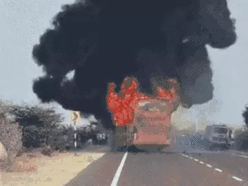 રાજસ્થાનના જેસલમેરમાં મંગળવારે બપોરે 3:30 વાગ્યે એક ચાલતી AC સ્લીપર બસમાં આગ લાગી હતી.